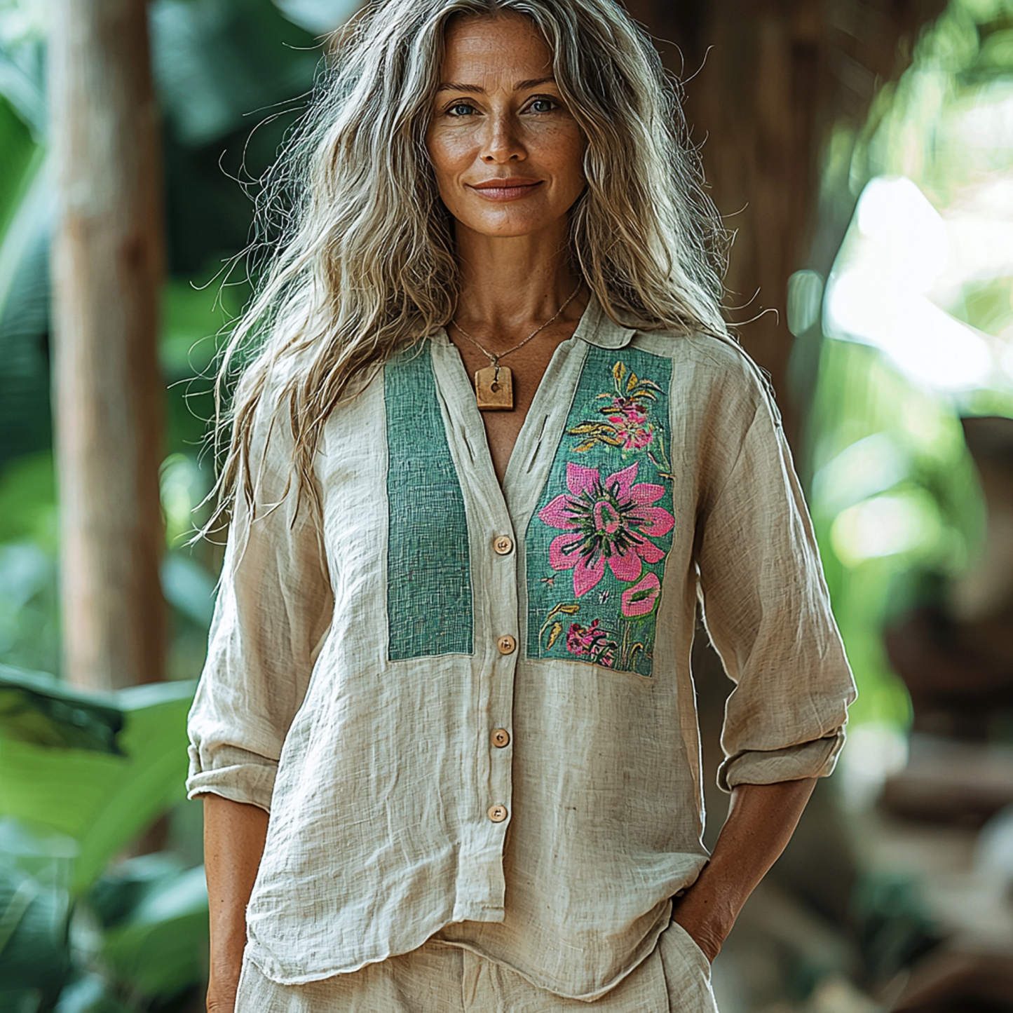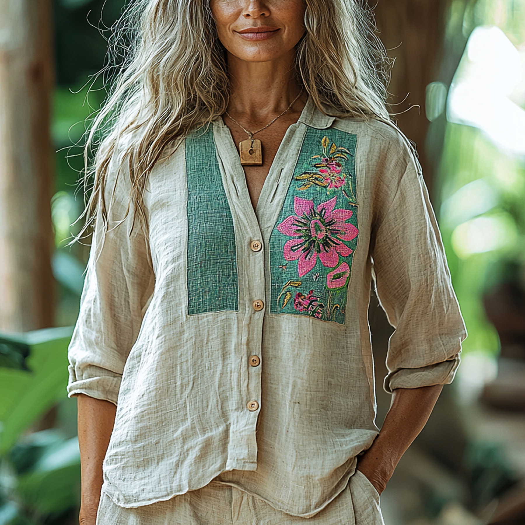 Women's Linen Floral Patchwork Loose Shirt