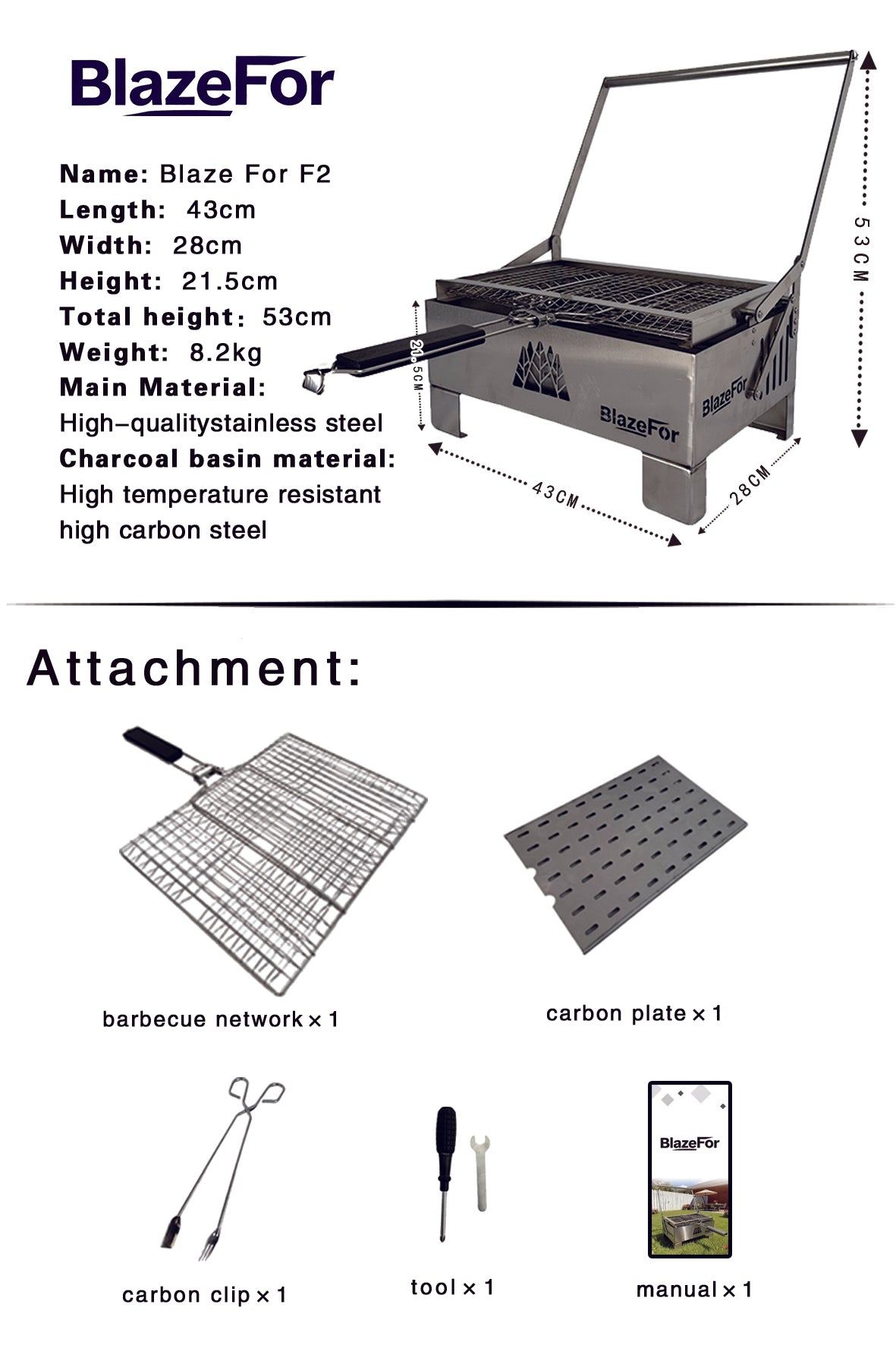 • 🛠️ Premium Materials – Stainless steel body + high-carbon steel charcoal tray