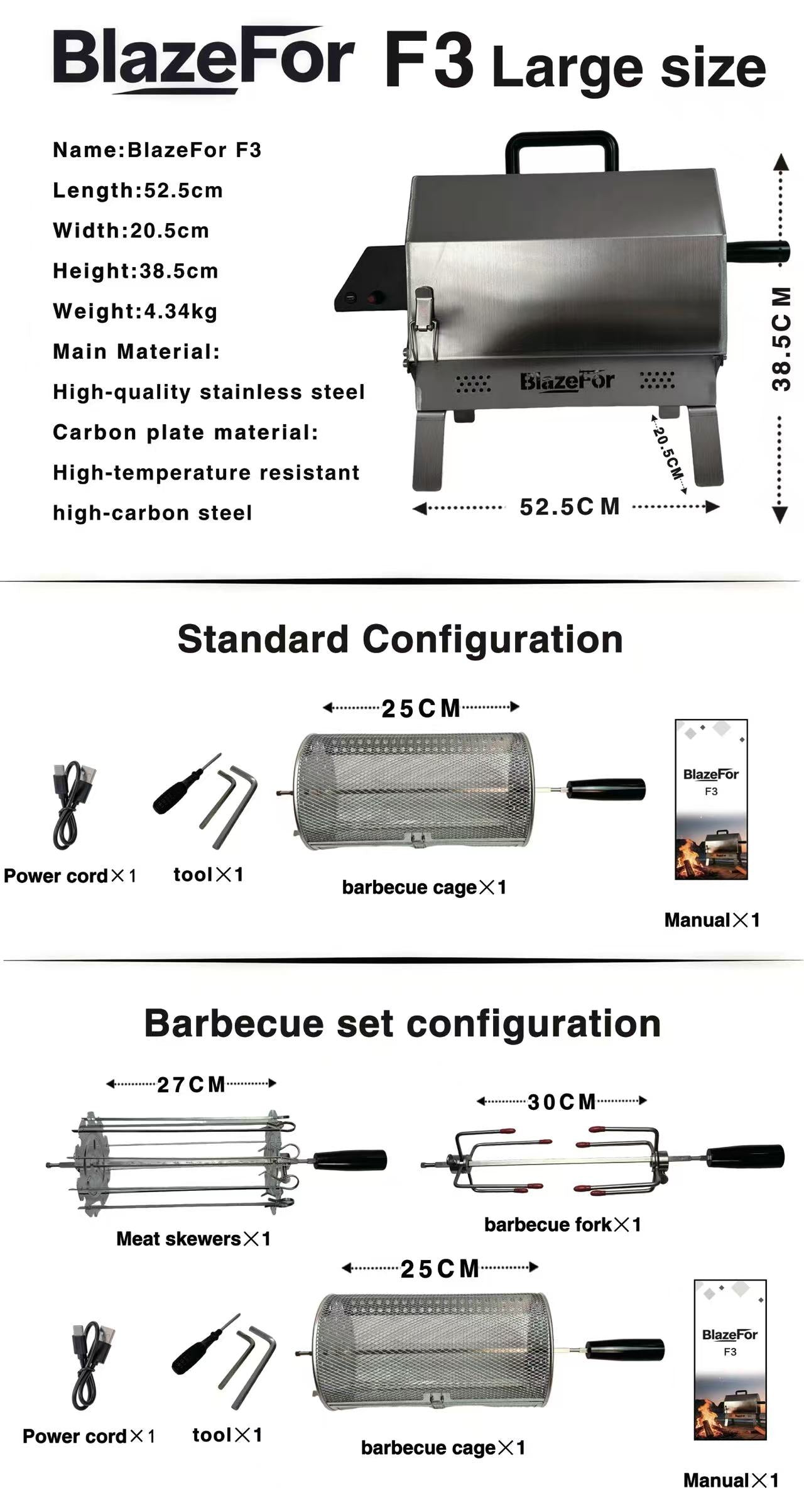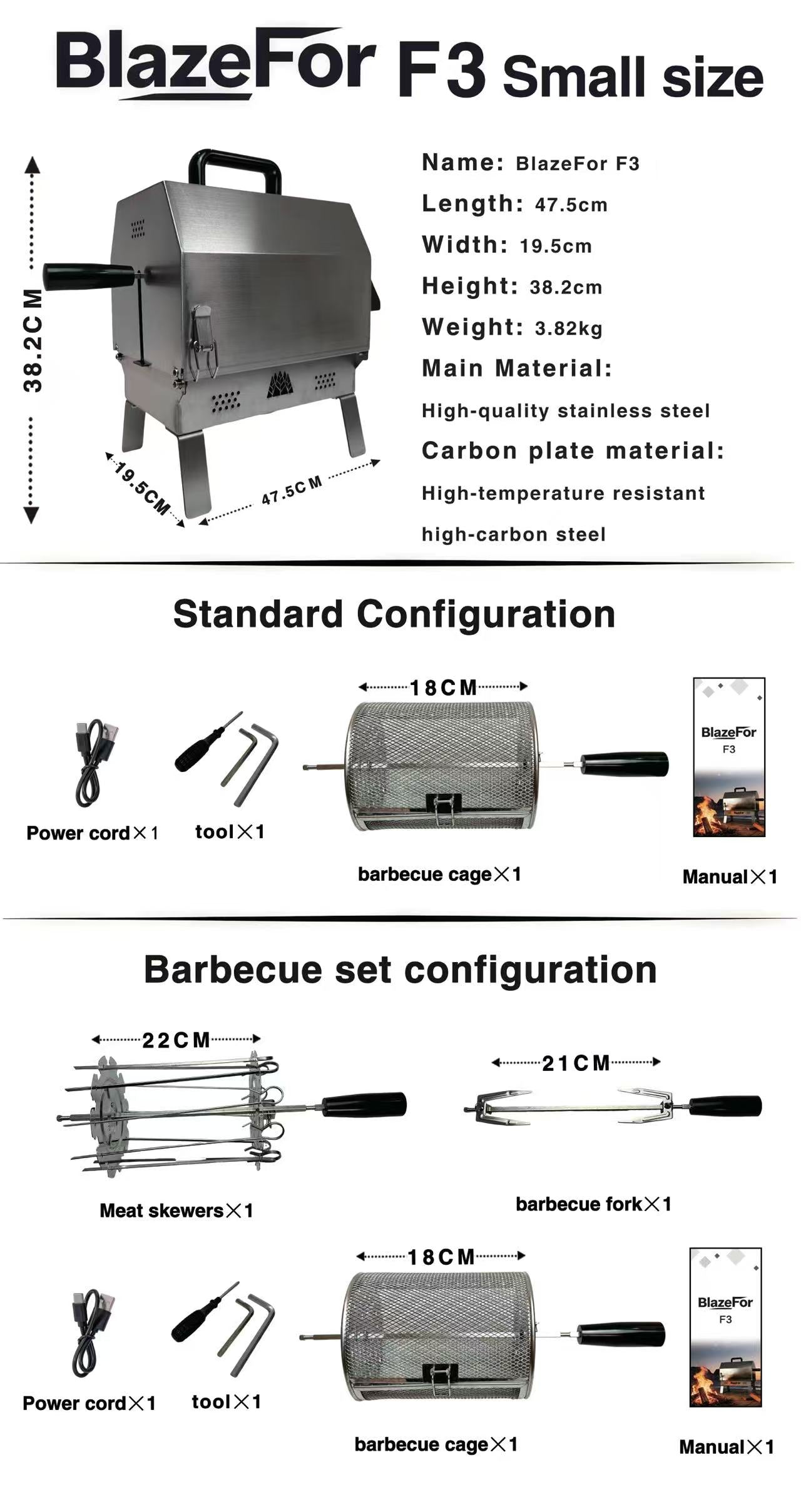 The materials for the barbecue basket, skewers, and kebab sticks: 304 stainless steel