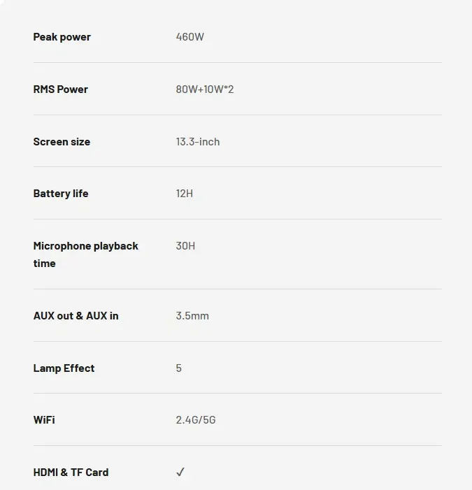 Long parties or performances? No problem. The speaker keeps playing for up to 10 hours with the screen on, and the microphone lasts up to 30 hours. Whether you're hosting a party or spending a full day outdoors, the Peak X1 won’t let you down.