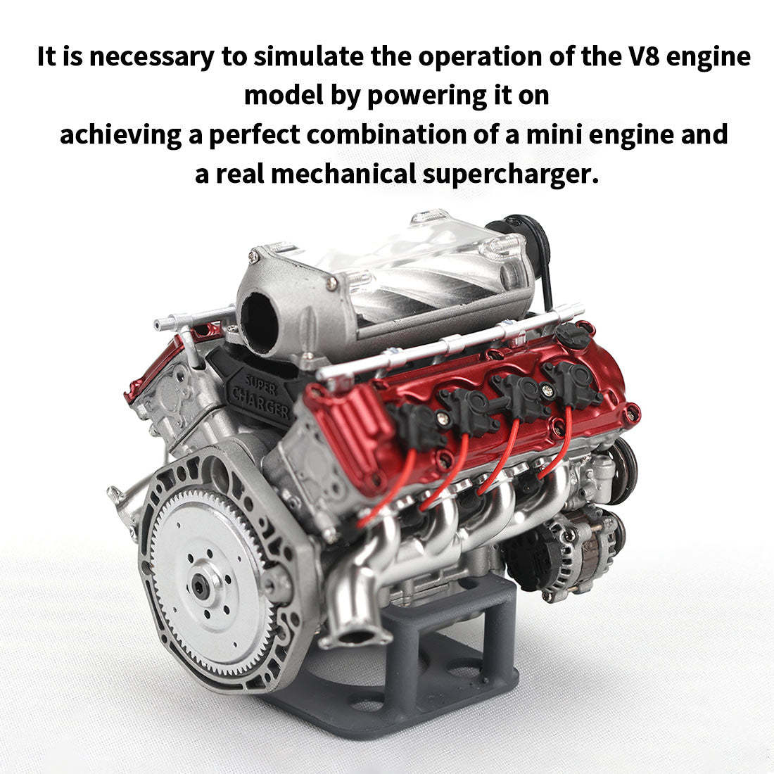Model KIT That Works: Product based on pre-color, users need to install. The V8 engine model can simulate the operation with electricity. At the same time, considering the stability and reliability of operation, we made the full bearing structure of the driving part in the mini space.